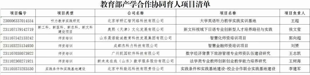 近日,教育部高等教育司发布《关于公布2023年产学合作协同育人项目立项名单的通知》(教高司函〔2023〕11号)、《教育部高等教育司关于公布2024年第一批产学合作协同育人项目立项名单的通知》,我校获批立项7项。截至目前,我校共获批教育部产学合作协同育人项目8项。