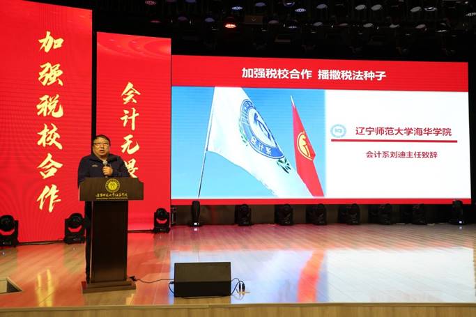 刘迪主任在讲话中表示,大学生是国之栋梁,是国家未来财富创造的主力群体,也是税法宣传的生力军。下一步我们还将继续加强与庄河市税务局之间的联系,采用多种形式积极推进青年学生税法宣传活动,让会计系学生能够将税收文化与校园文化相结合,从而让我们会计系每一位同学走出课堂,在实践中学习和巩固税法知识,在以后的工作学习中,争做税收知识的传播者、税收法律的维护者、依法诚信纳税的践行者。